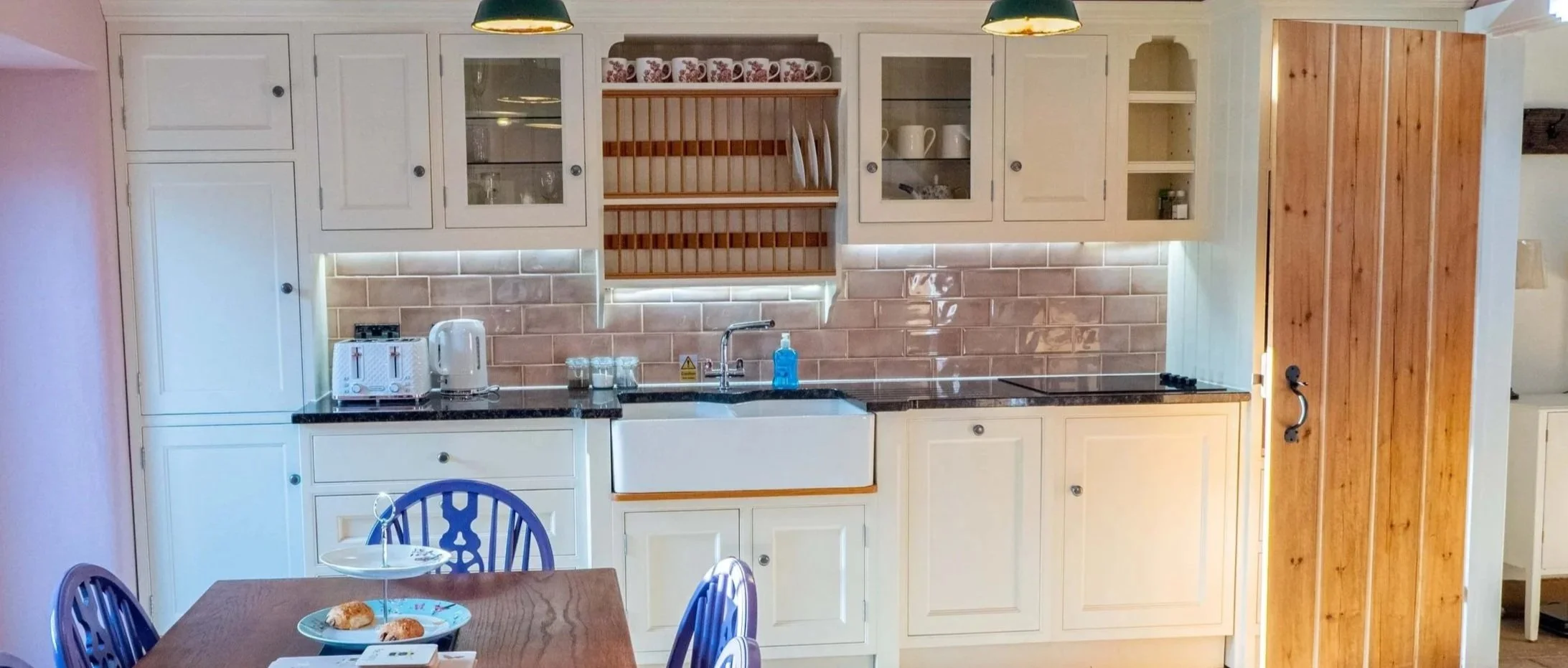 Good sized open plan lounge with plenty of comfortable seating for all. Smart TV. Bespoke lighting reflects its former use as a milking shed. High quality fitted kitchen with all areas having underfloor heating. Upstairs are three named bedrooms, all with en-suites, having bespoke lighting and creative decor to depict cattle breeds. Comfortable outdoor sitting areas front and back.